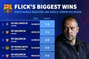 全文摘要:德国转会市场数据显示,弗里克执教巴萨71场,狂轰201球。其带队期间最大胜利包括7-0巴拉多利德、7-1瓦伦西亚等,多次大胜皇马、瓦伦西亚等对手,展现了强大的进攻火力。