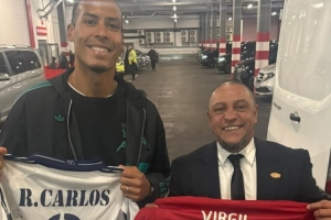 值得一提的是,身材高大的范戴克身高1.95米,而卡洛斯的身高1.68米,两人身高相差27厘米左右,所以当他们同框时视觉反差非常明显,也让那张合照更具趣味性。一位是力量与稳重兼具的中卫巨塔,一位是以爆发力和速度闻名的巴西铁卫。