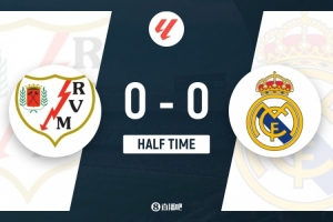 上半场伤停补时4分钟,半场结束,皇马暂0-0巴列卡诺。