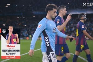 全文摘要:巴萨客场4-2战胜塞尔塔。莱万大放异彩,上演帽子戏法:点球首开纪录,随后接拉什福德传中垫射破门,最后再头槌建功。凭借其出色表现,莱万当选为全场MVP。