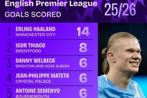 全文摘要:英超11轮战罢,进球榜出炉。哈兰德以14粒进球断崖式领跑,尽显射手本色。紧随其后的是蒂亚戈(8球)和几位打进6球的球员,包括维尔贝克、马特塔和塞梅尼奥。哈兰德的统治力成为本赛季英超进攻端的最大亮点。