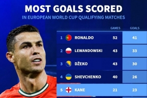 全文摘要:欧洲世预赛历史射手榜,C罗以52场41球高居榜首,莱万以43场33球位列第二。哈兰德虽仅出战14场,但已贡献21球,排名第七,展现惊人效率。凯恩、德佩等名将也榜上有名。