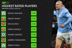 全文摘要:截至英超第11轮,WhoScored球员评分榜公布。哈兰德以7.90分高居榜首,展现出色状态。扎卡以7.37分位列第二。赖斯、穆基勒、凯塞多等紧随其后,前五名球员评分均超7.30分。曼城与阿森纳球员表现亮眼,占据榜单前列。