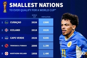 全文摘要:世预赛附加赛在即,库拉索以仅15.6万的人口,创下二战后晋级世界杯人口最少的国家纪录。德国《转会市场》统计了这一榜单的前十名,冰岛(35.2万)和佛得角(52.5万)紧随其后,特立尼达和多巴哥(130万)等小国也成功上榜,展现了足球的普及与奇迹。