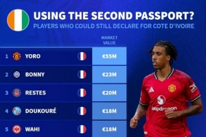 全文摘要:德国转会市场盘点了可为非洲国家队效力的球员。科特迪瓦有约罗等9名法国籍球员,身价最高5500万欧;塞内加尔与加纳也多名法国裔;摩洛哥则多名法国、比利时籍球员。这些球员均有权选择代表非洲国家队出战。