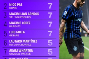 全文摘要:欧洲五大联赛战火重燃。Squawka统计显示,国米后卫迪马尔科以11次创造重大机会高居榜首。尼科-帕斯等4人并列第二,均贡献7次。劳塔罗、凯恩等知名球员也跻身前十。