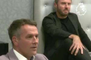 全文摘要:英超曼联2-1胜利物浦。赛后名宿欧文与卡里克观看直播,反应各异。曼联开场进球时,卡里克激动而欧文平静;利物浦进球时,欧文预言胜利。但曼联反超后,欧文表情凝固,卡里克则低调致歉。