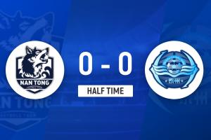 第20分钟,南通队再次在右路制造威胁,尹韩龙内切低射,戴曜城稳稳将球抱住。↓