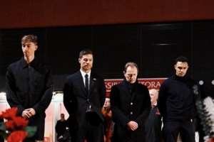 体育资讯11月4日讯 北京时间周三凌晨的欧冠联赛阶段第4轮比赛,皇马将在安菲尔德挑战利物浦。本场比赛之前,皇马主帅阿隆索、后卫赫伊森和阿诺德、公关总监布特拉格诺一行来到若塔纪念碑前,阿隆索献上鲜花向这名7月因车祸不幸离世的利物浦前锋表达敬意。