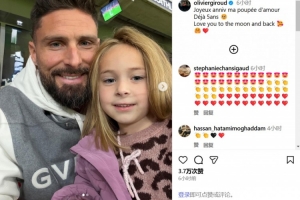 全文摘要:法国前锋吉鲁在社交媒体为5岁女儿庆生,引用童话《猜猜我有多爱你》中的感人话语“I love you to the moon and back”,表达深沉父爱。本赛季,39岁的他为里尔出战14场,贡献3球1助。