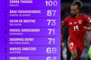 全文摘要:世欧预小组赛结束,禁区次数榜出炉。威尔士边锋索尔巴·托马斯以100次领跑,法罗群岛的弗雷德里克斯伯格(87次)和比利时核心德布劳内(73次)分列二、三位。此榜单直观反映了球员的突破与进攻威胁。