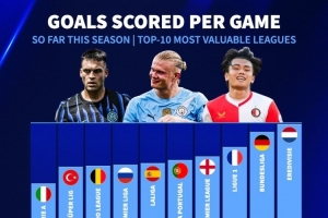 全文摘要:根据德国转会市场统计,本赛季欧洲总身价前10联赛的场均进球榜出炉。荷甲以3.36球高居榜首,德甲(3.21)和法甲(2.92)分列二、三位。意甲则以2.22球的场均进球数垫底。