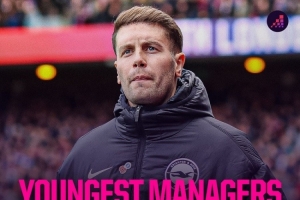 体育资讯11月20日讯 Opta统计了教练达成英超50场里程碑时的年龄,并列出英超执教50场最年轻主帅排名,赫尔泽勒居首。