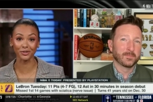 McMenamin:“我今天和一位接近勒布朗的消息人士聊过,他告诉我勒布朗通常对这类事情持谨慎态度,但他透露勒布朗在赛季首战对阵爵士后感觉非常棒。球队周三休息,周四进行了训练。在周日客场对阵犹他之前,他们还有两天时间准备。接下来的关键问题不仅是勒布朗能否保持健康、避免坐骨神经问题复发——显然他正在进行锻炼和灵活性训练来预防。但与此同时,他能否恢复体能并保持最佳身体状态坚持到赛季结束?而且从现在到常规赛结束,勒布朗最多只能再缺席三场比赛才有资格参与奖项评选,包括最佳阵容。过去21年他连续入选最佳阵容。今天和我交谈的消息人士说,‘41岁的年纪,我更希望勒布朗跳过背靠背比赛,但我们还得看这与他可能再次入选最佳阵容的计划如何协调。’”