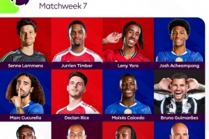 全文摘要:英格兰名宿希勒评出英超第7轮最佳阵容。门将为曼联的拉门斯,后防包括阿森纳的廷伯与曼联的约罗。中场赖斯、凯塞多和吉马良斯入选,前锋则有热刺的库杜斯等。切尔西主帅马雷斯卡当选本轮最佳主帅。