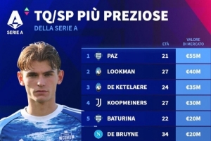 全文摘要:德国转会市场公布意甲前腰、二前锋身价排行。21岁的尼科-帕斯以5500万欧居首,卢克曼、德凯特拉雷分列二、三位。34岁的德布劳内与巴图里纳同以2000万欧并列第五,卡博尼等四人并列第九。