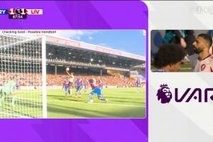 体育资讯09月28日讯 英超第6轮,水晶宫vs利物浦。比赛第87分钟,基耶萨替补破门为利物浦一度1-1扳平比分,VAR检查了此球过程中萨拉赫的疑似手球,并确认进球有效。